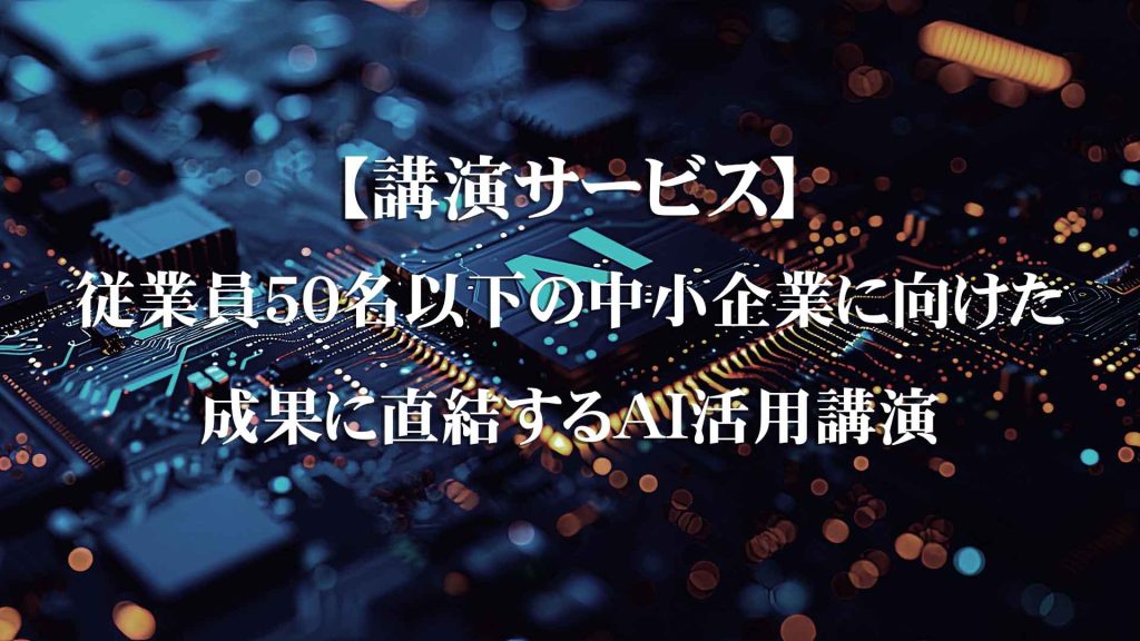 【講演サービス】 概要 日本クラウドコンピューティング株式会社附属AI研修教育研究所では、中小企業の経営者、営業部門責任者、マーケティング・集客担当者に向けた実務型AI活用講演を全国で提供しています。「AIに興味はあるが … 続きを読む 講演サービス